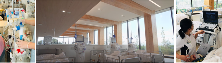 また、定期的なシャントエコー検査を実施し、平素からシャントトラブルの早期発見に努めています。ICUにも透析装置を設置し、重症患者の血液浄化治療にも対応できる体制を整えています。