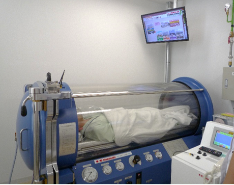 高気圧酸素治療(HBOT)は甲南医療センター開院と共に新規導入された治療です。装置は川崎エンジニアリング社製 第1種装置「KHO-2000S」使用しています。